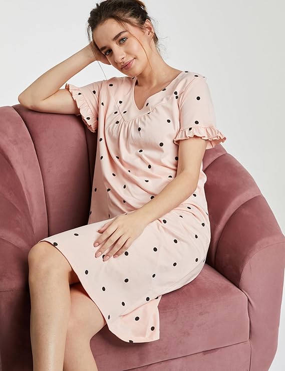 Amazon Brand – Eden & Ivy Cotton Knee Length Women’s Nightdress Regular Nightgown
